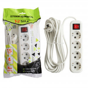 Удлинитель 1.5м*4 з/к с выкл ПВС 3*1 16А 1-2.SALE 860487