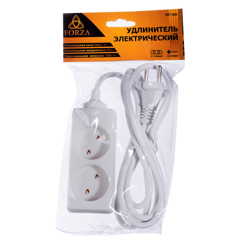 Удлинитель 2м*2 евро 2*0,75кв FORZA 907-003