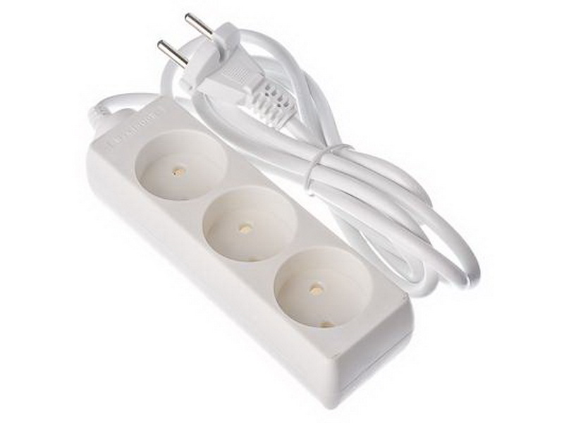 Сетевой фильтр 5 гнезд 3 метра с выкл. с заземлением ПВС 3*0,75 белый (Универсал)
