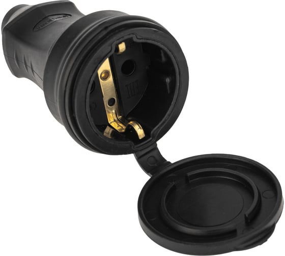 Розетка 1ая с з/к каучук с заглушкой 16А IP44 черная PROconnect 111-004-4