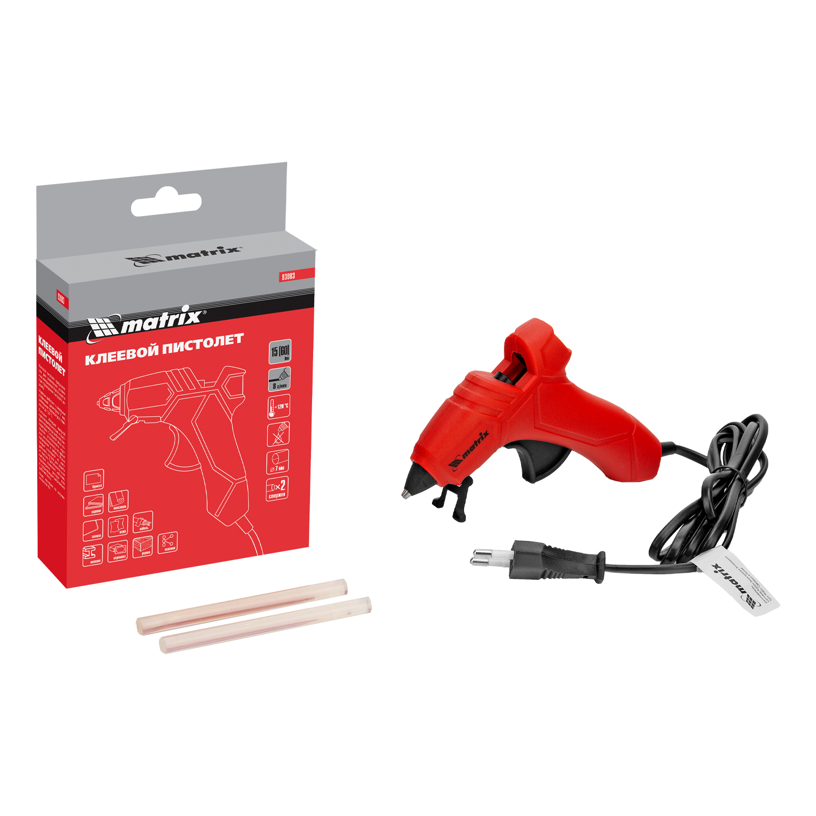 Пистолет клеевой 7мм 15W Матрикс 93003