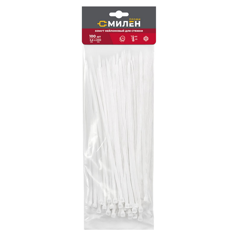 Хомут стяжка 2,5*200 белый /100шт/ Милен