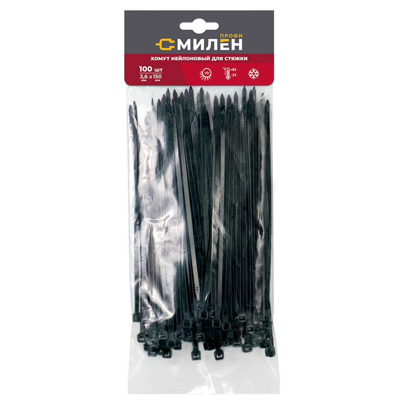 Хомут стяжка 2,5*150 черный /100шт/ Милен