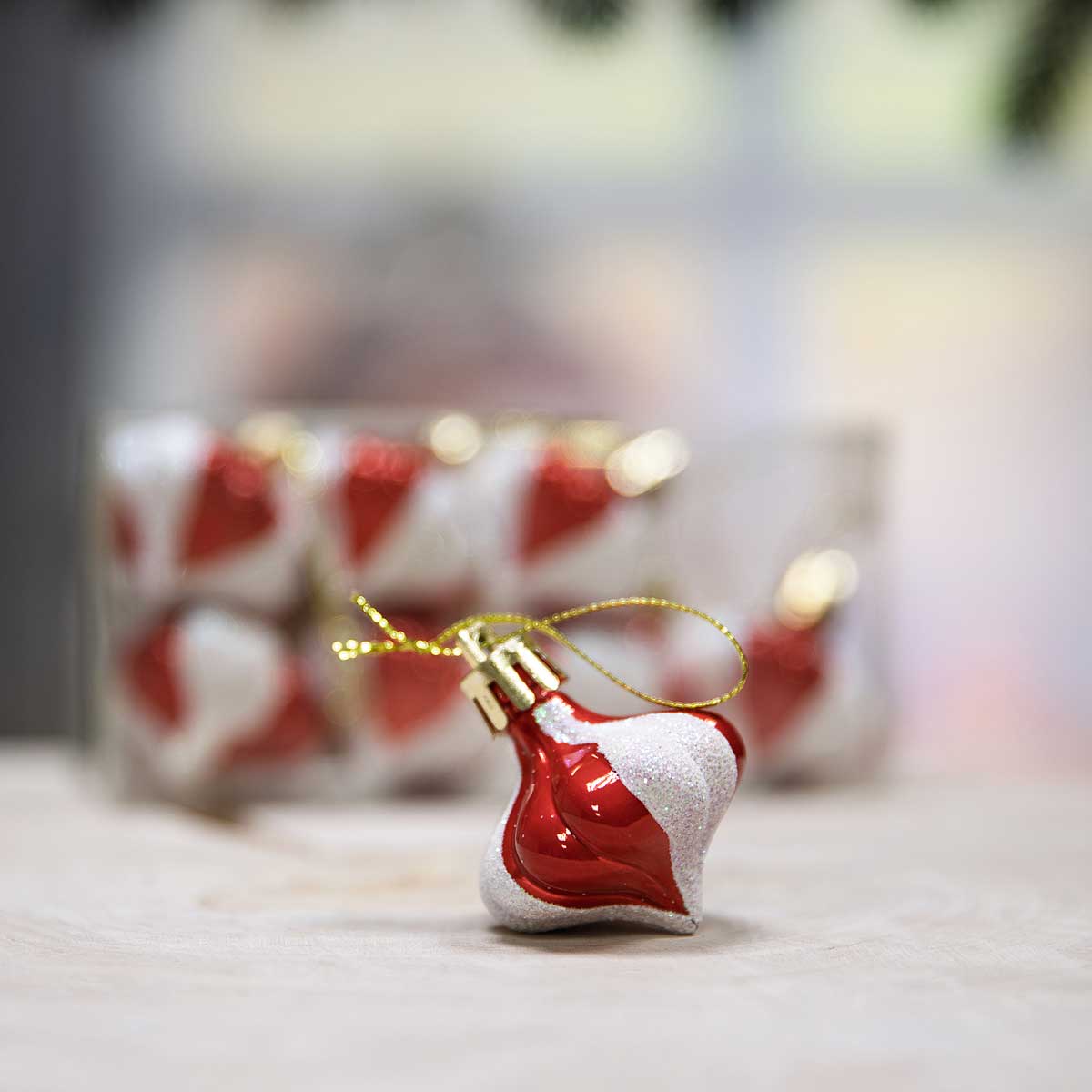 Шар 4ZDC8-J58-4 8шт 4см Юла красная с белыми блестящими дольками