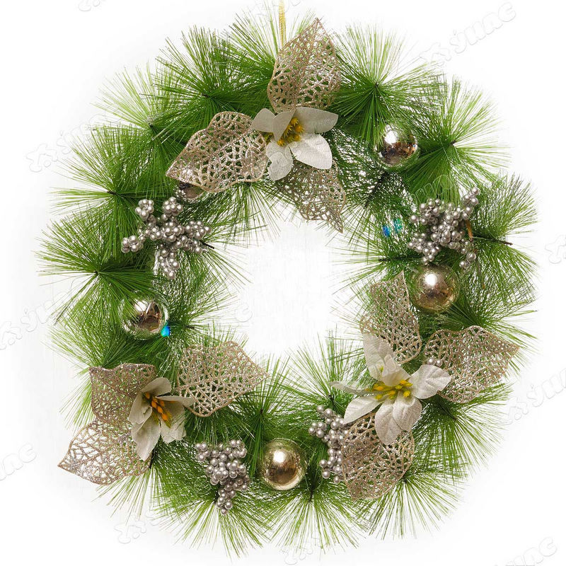 Венок новогодний Т038-2 40см серебр.цветы,ягоды,шарики