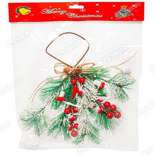 Венок новогодний Т038-3 40см красн.цветы,ягоды,шарики