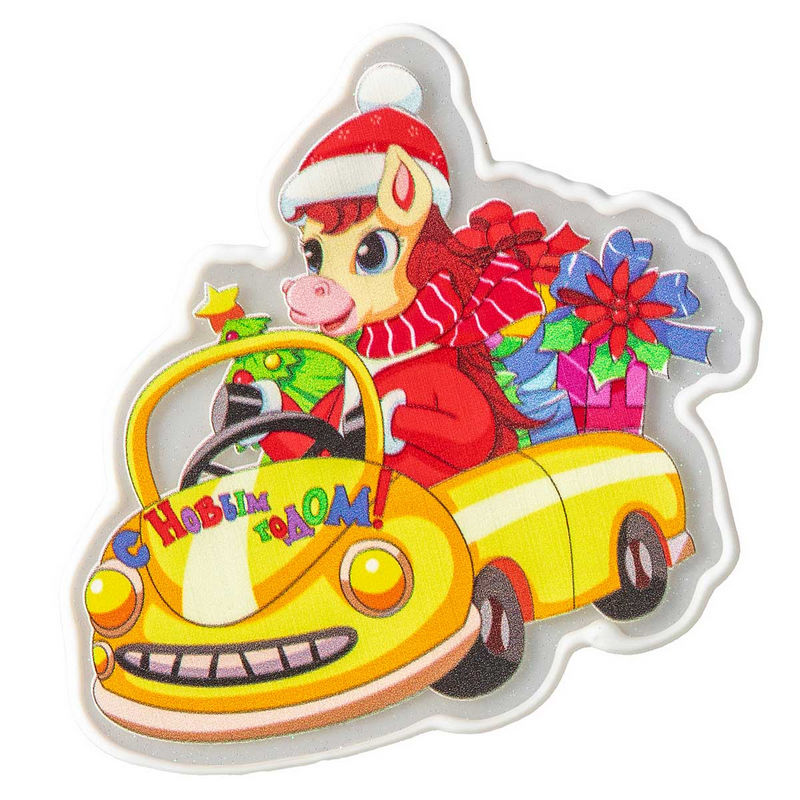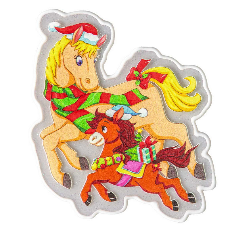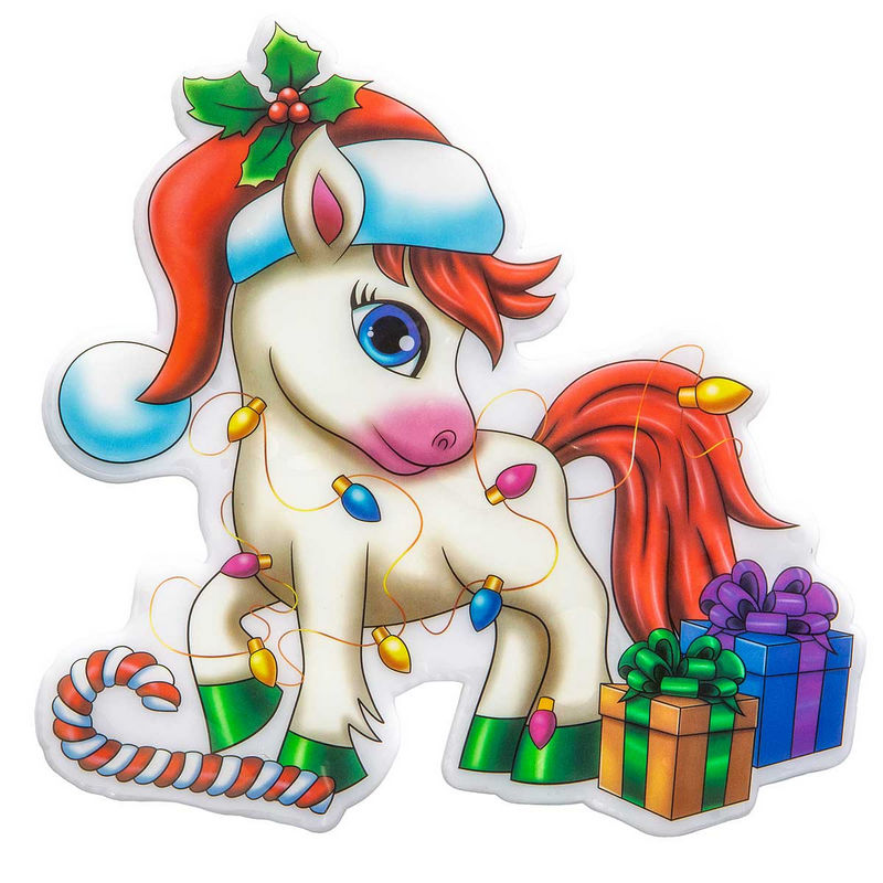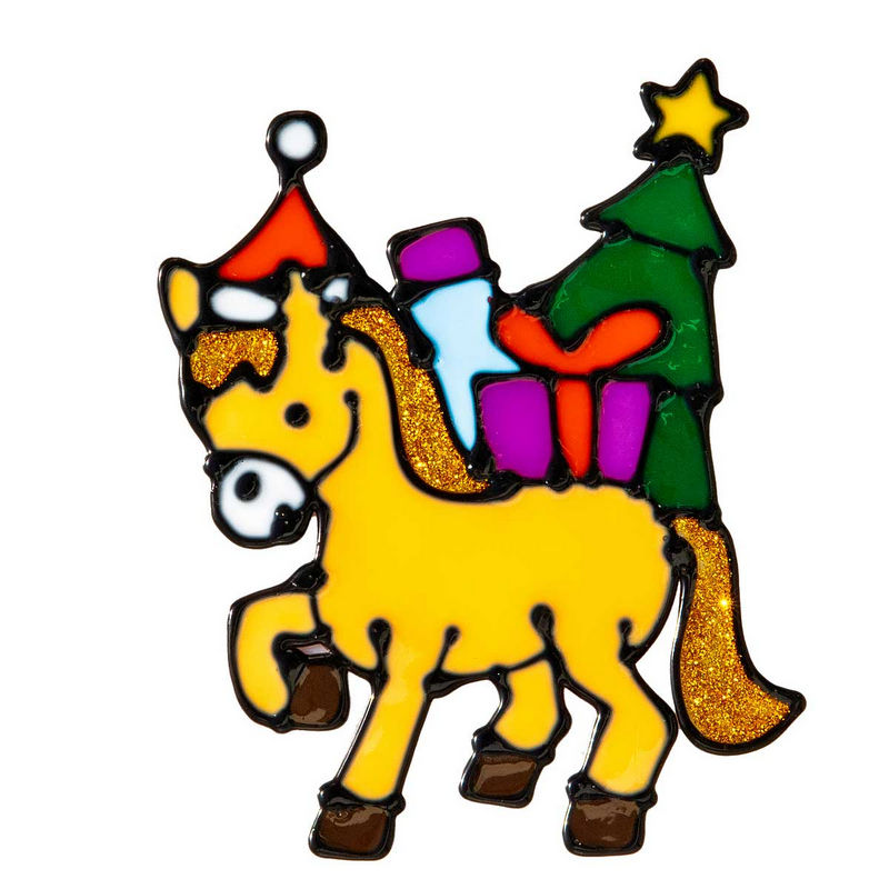 Наклейка на стекло А97 Лошадка с елкой и подарками 15*20см