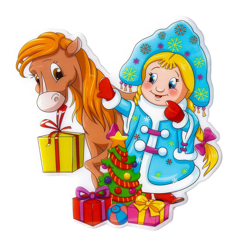 Наклейка на стекло А104 Снегурочка с лошадкой 20*20см