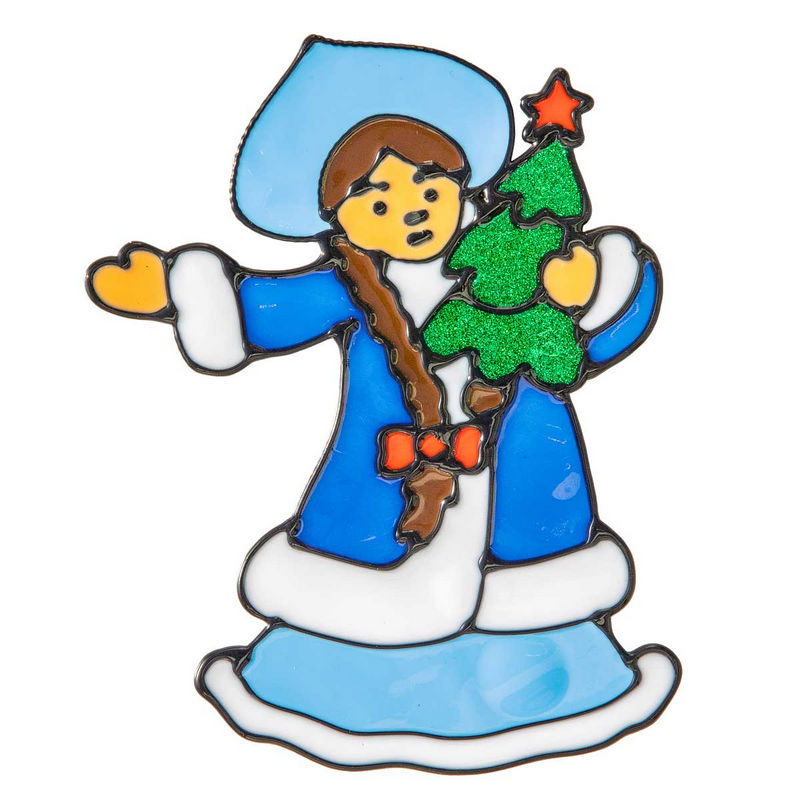 Наклейка на стекло А110 Снегурочка с елкой 20*25см