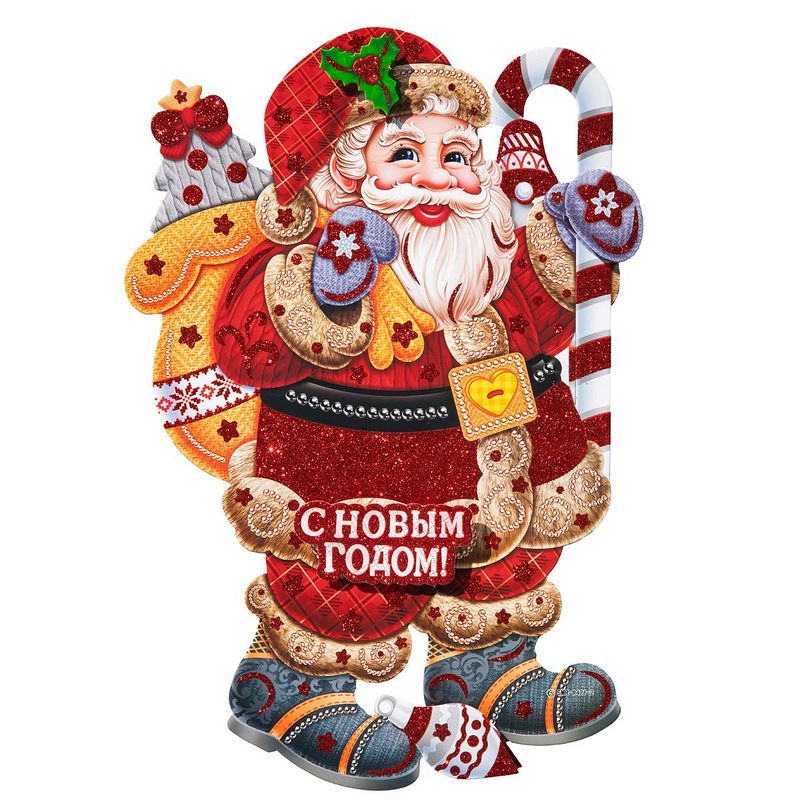 Плакат новог.карт. 225-2 Дед Мороз с мешком 40см