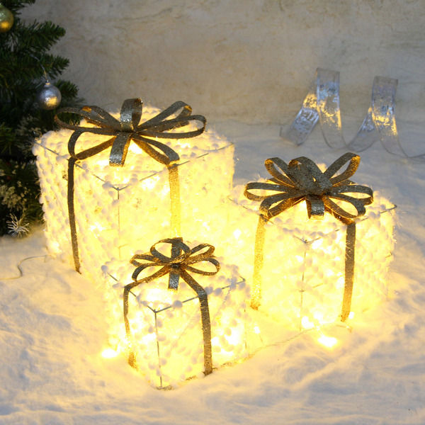 Фигурка светодиодная "Подарок от Санты" (набор 3шт) Золото 615-008