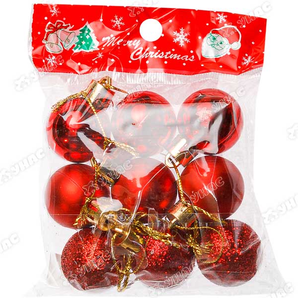 Шар Т555-3 9шт 3см красный(глянец/матовый/блестки)