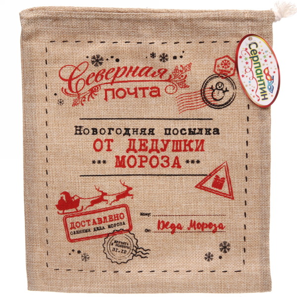 Мешок подарочный 24х30 см "Посылка от Дедушки Мороза" 117-177