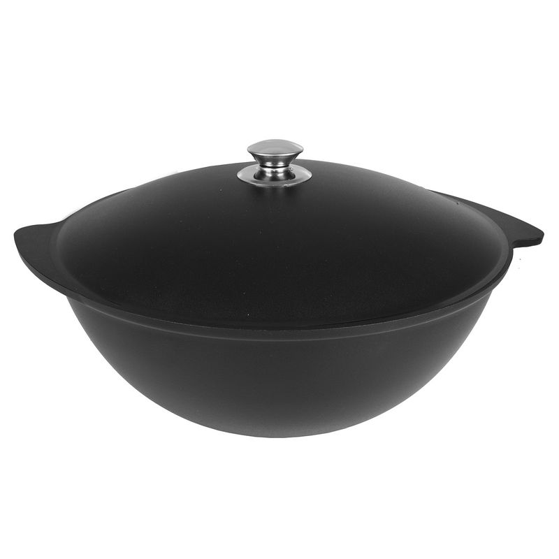 Казан чугунный 6 литров круглое дно с крышкой д.31,5см Узбекистан