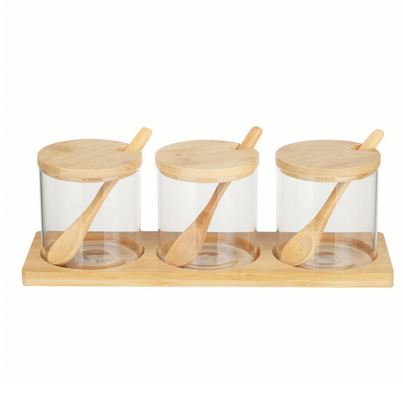 Набор банок для хранения с ложкой 3шт 300мл стекло бамбук VETTA 828-327
