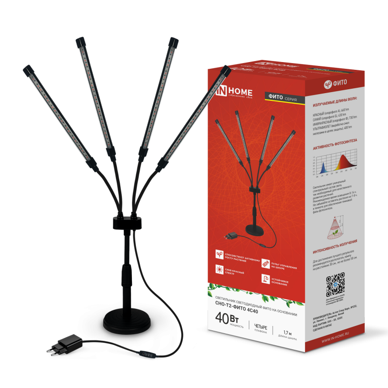 Фитосветильник св/д настольный Т2 4*10Вт пульт InHome