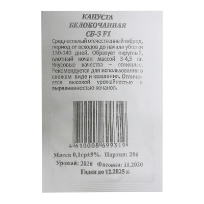 Капуста СБ-3 б/к F1 0,1гр Садовита Ц